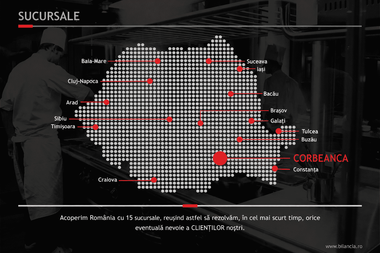 - La BILANCIA suntem 200 de oameni - o echipa mare si puternica datorita careia am ajuns unul dintre cei mai importanti furnizori de echipamente, utilaje si accesorii pentru industria Horeca si retail, pentru Romania.